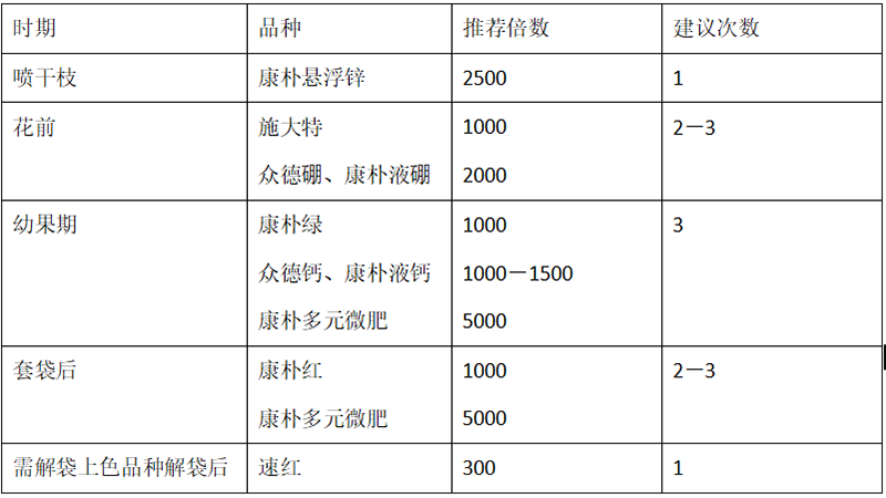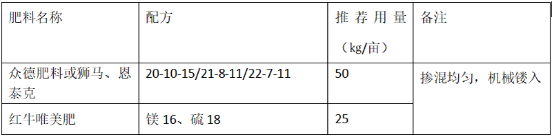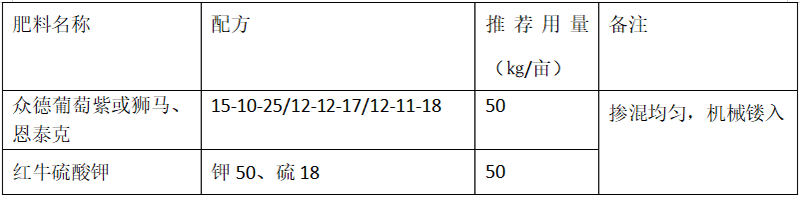 (2)推薦施肥套餐(根據(jù)目標(biāo)產(chǎn)量、地域、品種、樹勢(shì)、樹齡、地力等適當(dāng)調(diào)整)