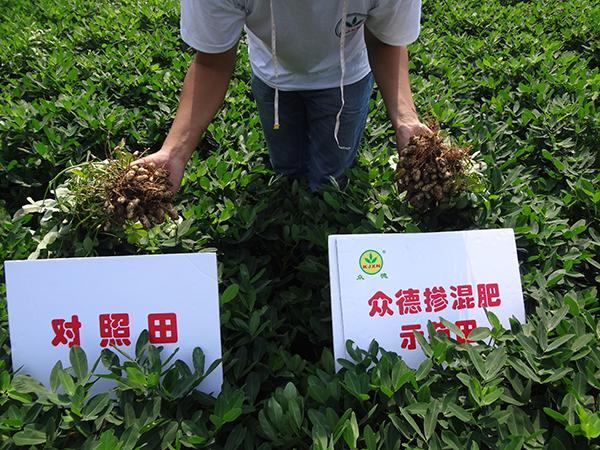 沂南縣辛集北左泉村農(nóng)民顧守武,去年用眾德(16-12-14)120斤/畝,生物有機肥80斤/畝,新朋友貴蓋美30斤,持力硼2袋,在翻地前一次性施入,到9月10號收獲期測產(chǎn)1173斤,與對照田產(chǎn)量1055斤相比,畝增產(chǎn)118斤,增產(chǎn)幅度11.2%。顧先生滿臉喜悅的說:“用眾德花生高產(chǎn)套餐方案效果非常好,歸功于眾德系列肥料原料考究,配方合理,營養(yǎng)全面,對于重茬、土壤酸化等問題障礙能夠得到有效解決,改良并活化土壤,特別是態(tài)康科、康樸系列葉面肥,能促進花生根系和葉片生長,補充硼、鉬、鈣等中微肥,提高座果率、改善品質(zhì),提高產(chǎn)量,農(nóng)民最終獲得收益”