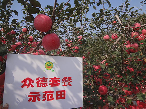 唐師傅對于眾德集團的專業(yè)和專注很是滿意,同意這3畝地都用眾德的方案,以觀后效。通過一年的努力,到解袋時,唐師傅相當高興,因為共套了5.8萬個袋的蘋果長的個大,表光靚,苦痘病和痘斑病極少,他說老果園長出了新果園的水平。